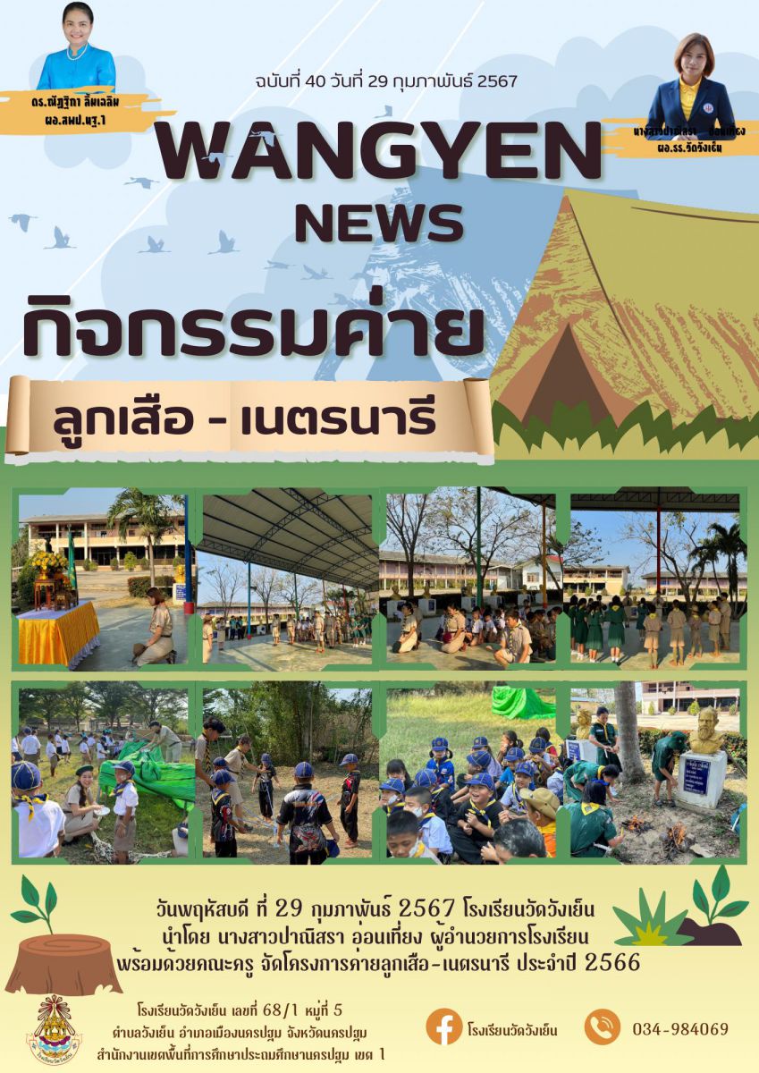 จดหมายข่าว ประชาสัมพันธ์ โรงเรียนวัดวังเย็น เรื่อง การจัดค่ายลูกเสือ-เนตรนารี ประจำปี 2566