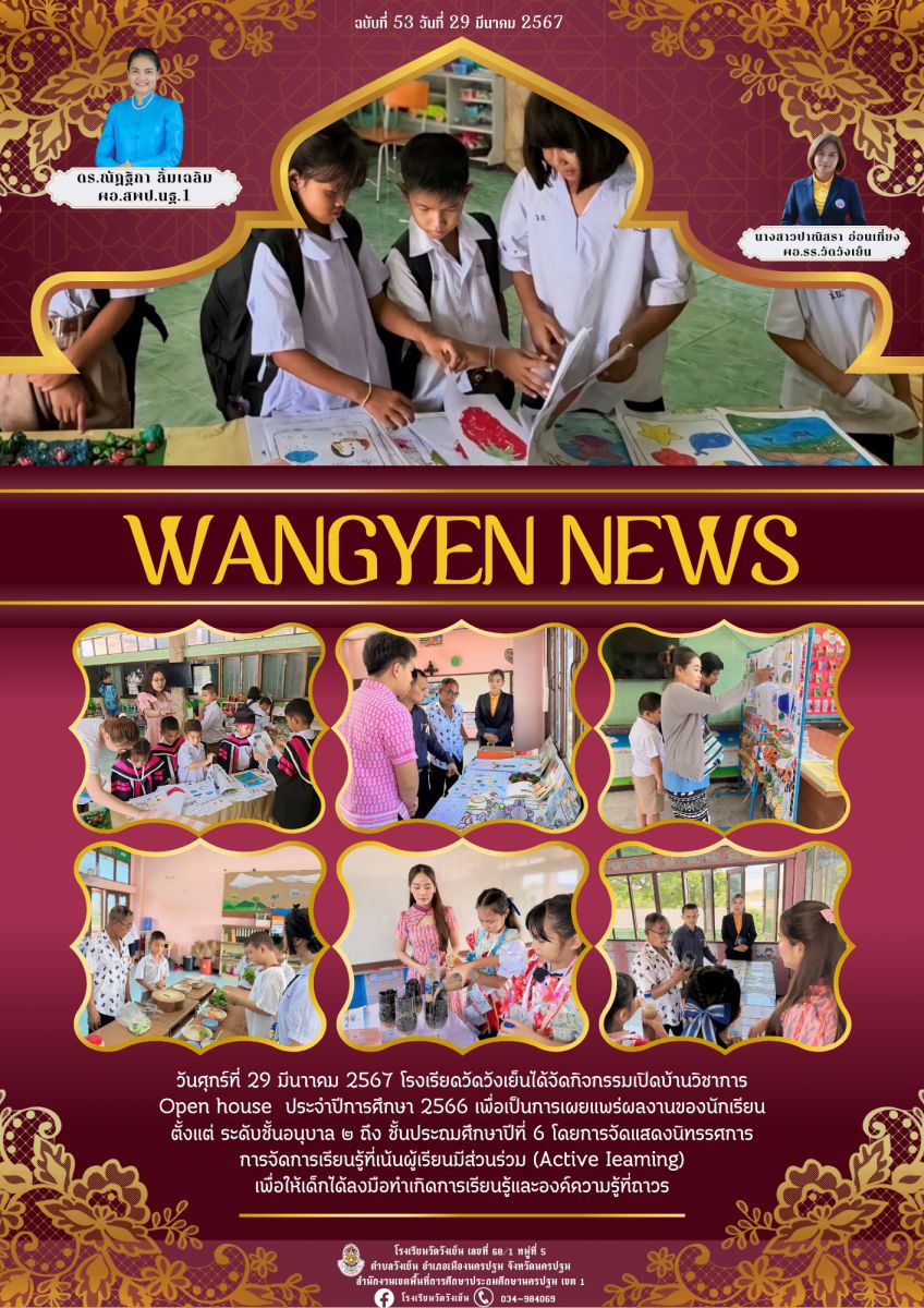 จดหมายข่าว ประชาสัมพันธ์ โรงเรียนวัดวังเย็น เรื่อง กิจกรรมเปิดบ้านวิชาการ Open house ประจำปีการศึกษา 2566