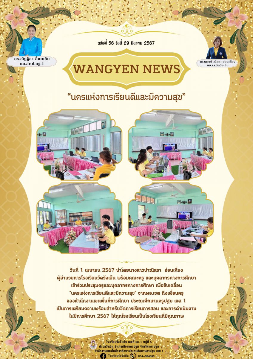 จดหมายข่าว ประชาสัมพันธ์ โรงเรียนวัดวังเย็น เรื่อง การเข้าร่วมประชุมครูและบุคลากรทางการศึกษา เพื่อขับเคลื่อน นครแห่งการเรียนดีและมีความสุข