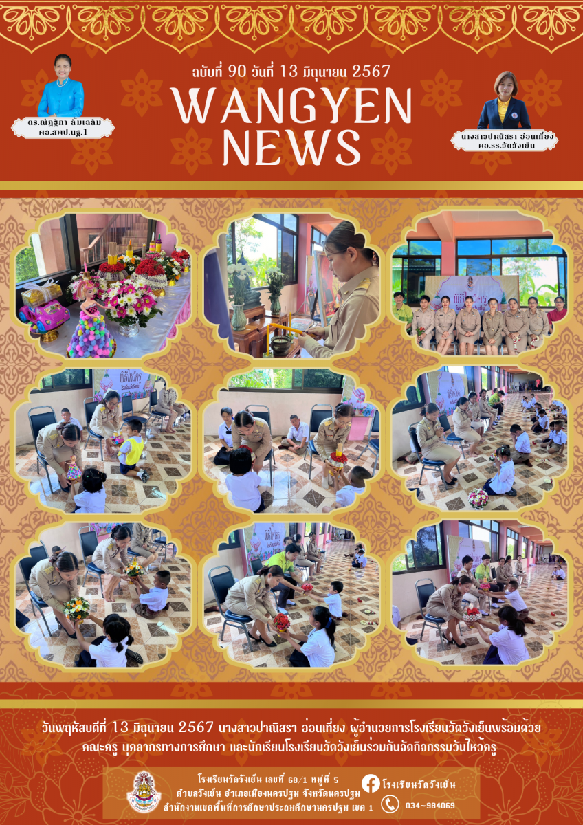 จดหมายข่าว ประชาสัมพันธ์ โรงเรียนวัดวังเย็น เรื่อง ผู้อำนวยการโรงเรียนวัดวังเย็นพร้อมด้วย คณะครู บุคลากรทางการศึกษา และนักเรียนโรงเรียนวัดวังเย็นร่วมกันจัดกิจกรรมวันไหว้ครู